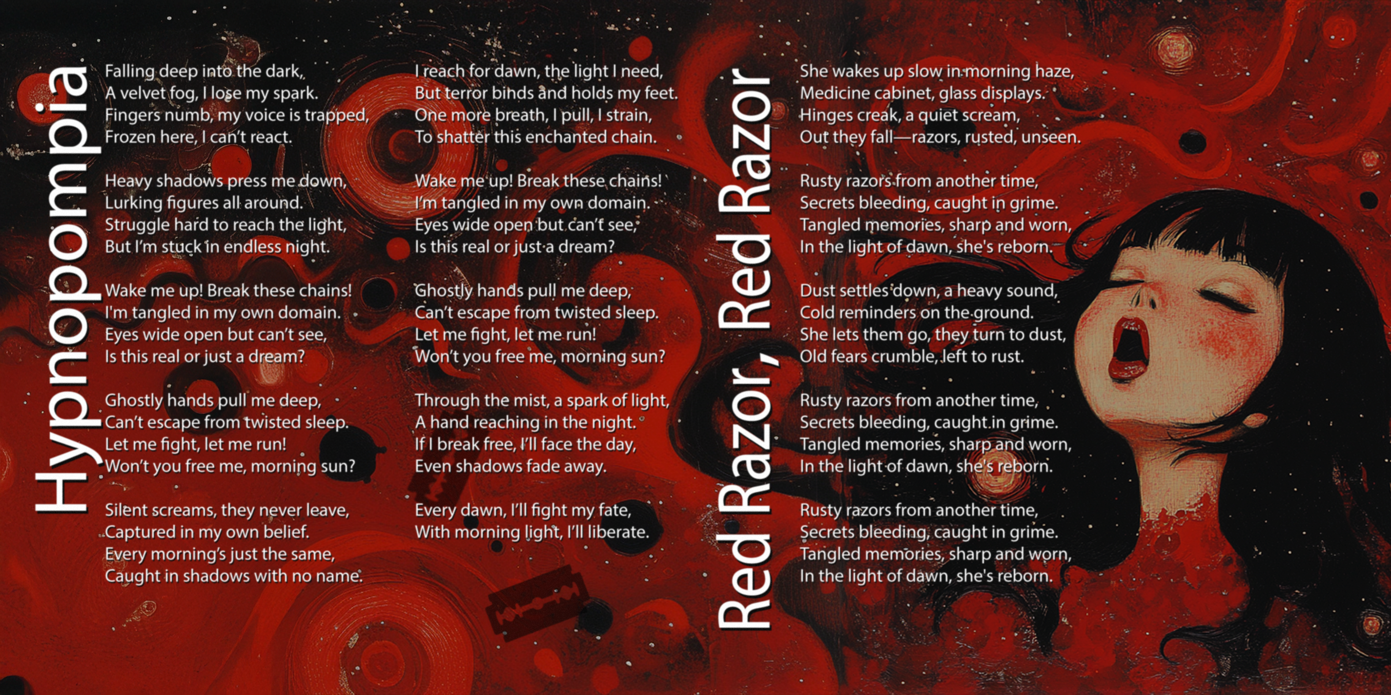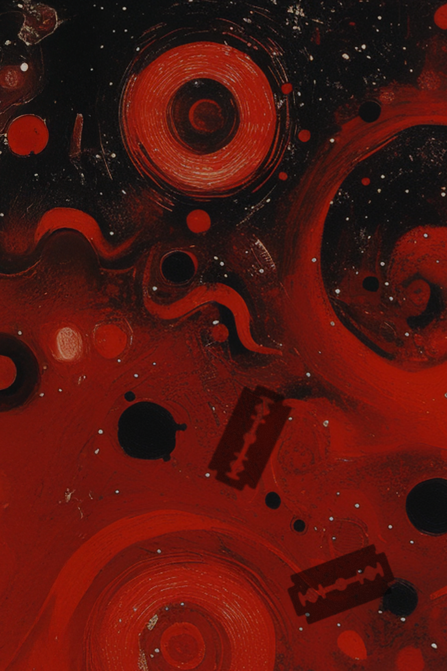That image stayed with me—razors tumbling like sharp confessions into the morning light. I didn’t understand what I’d stumbled into, but the feeling of it etched itself deep into my bones. Years later, when I began writing “Red Razor, Red Razor,” that moment came flooding back with eerie clarity. The song started as a memory, but it became a ritual. A way of confronting the unspoken things our families bury. The cabinet, the blades, the silence that followed—it was all part of a larger wound I didn’t have language for yet. But music has always been my way of finding that language.
