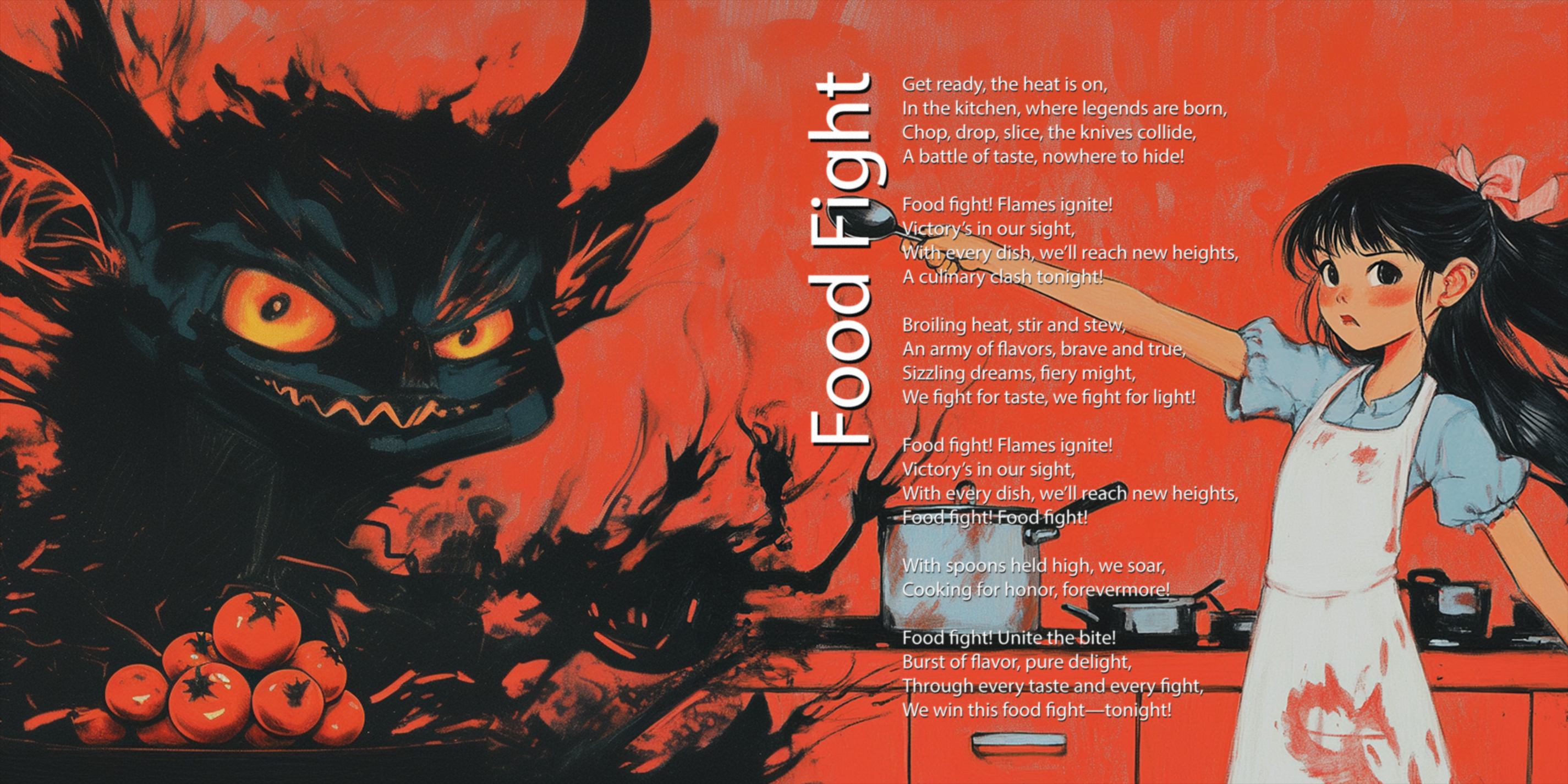 “Food Fight!” will probably go down as one of the most chaotic songs I’ve ever recorded—and I mean that in the best way. People always tell me how triumphant it sounds, how it feels like the soundtrack to some mythical Iron Chef showdown in an alternate universe. And it is. But beneath all the distorted guitars and backup shouts, there’s a whole mess of memories and meanings baked in.