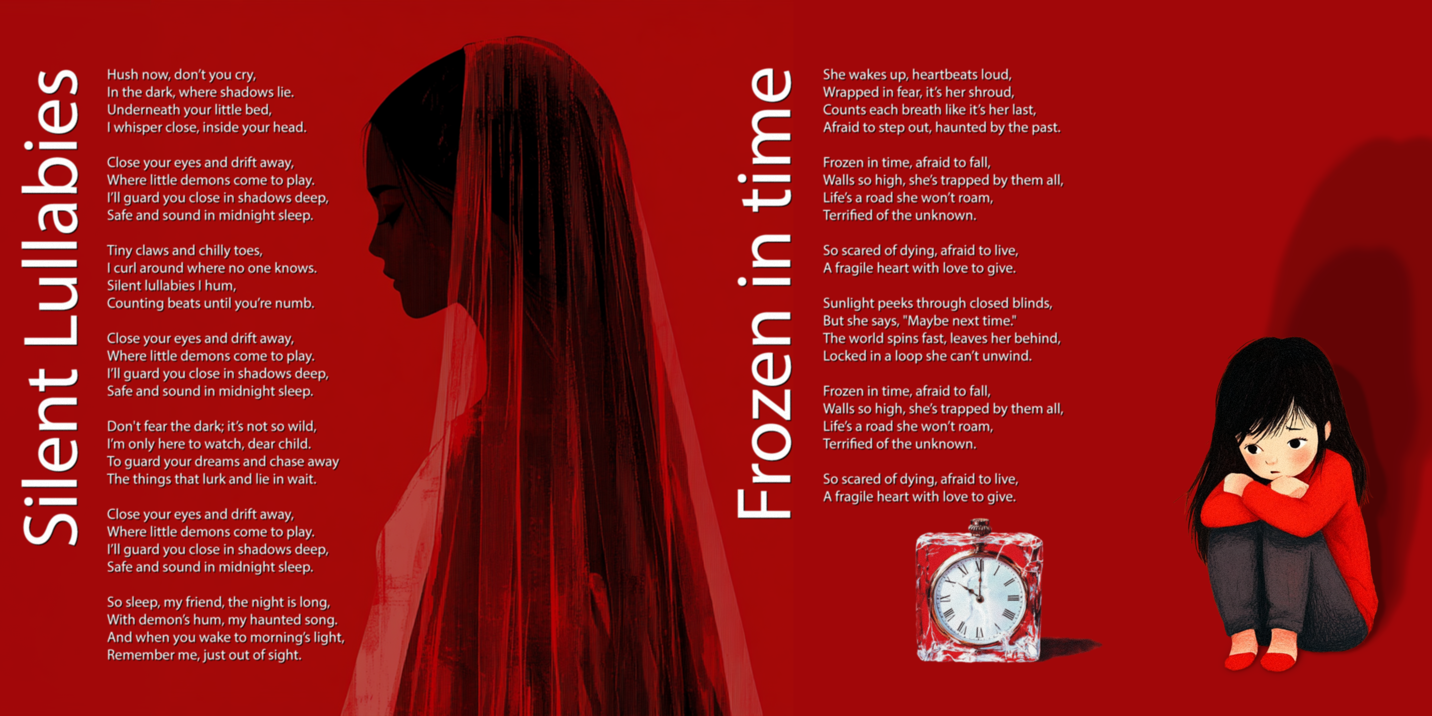 It’s strange how listeners say it sounds like protection. Maybe because when you’re young, danger and love feel like the same thing. That voice in the song—it’s mine, but it’s not. It’s a version of me I met too early, maybe too late. A guardian? A warning? Maybe just the last piece of myself I could still cradle like a child. After all, I never made it to the altar, never wore the white dress for real. But I wore it in every dream. Red soaked through it, every time. And then nothing. That’s how Silent Lullabies ends. Not with a scream. Not with a goodbye. Just a hush. Just the dark pulling me back, counting the beats until I’m numb.
